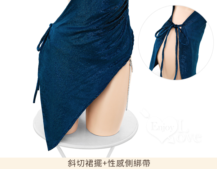 ►您現在的位置:首頁>情趣夜店派對服!閃亮絲絨不規則斜切露乳銀鍊點綴連身裙兩件組