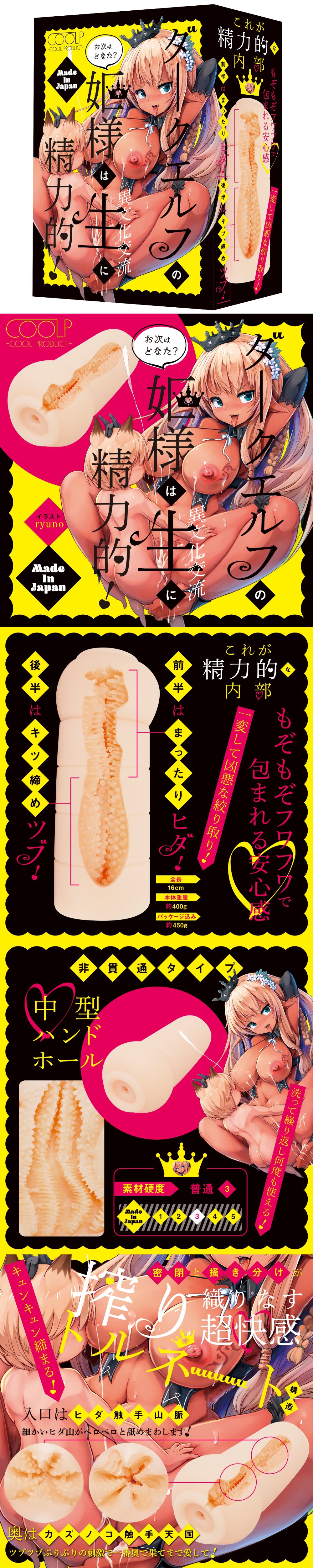 黑暗精靈公主的跨文化性交流 (ダークエルフの姫様は異文化交流 に精力),是一款和 Hot Powers - 吸精魔王 非常類似的名器,全重 400克,插入長約 13cm,通道的入口名為觸手山脈,6個激凸的肉牆,如同連綿不盡的山脈四方八面地圍繞著你,而深處則名為觸手天國!以極大量凸起的小肉球,不停磨擦你的巨龍,加上入口非常細小,吸啜力也能大大增強!