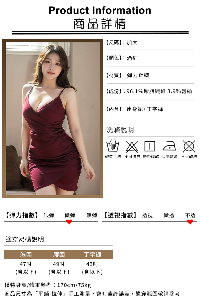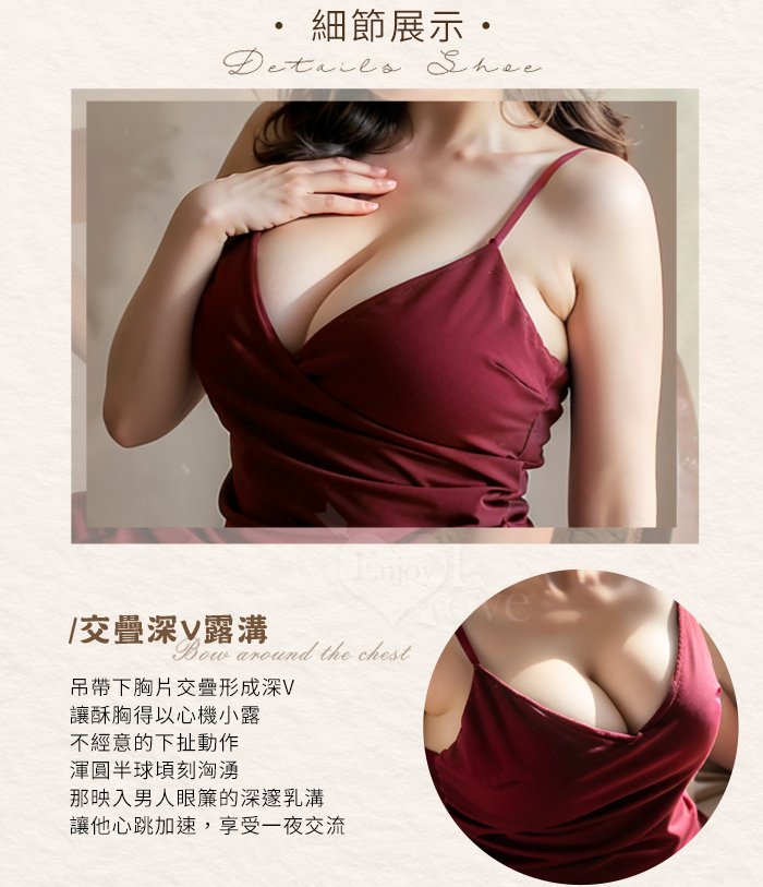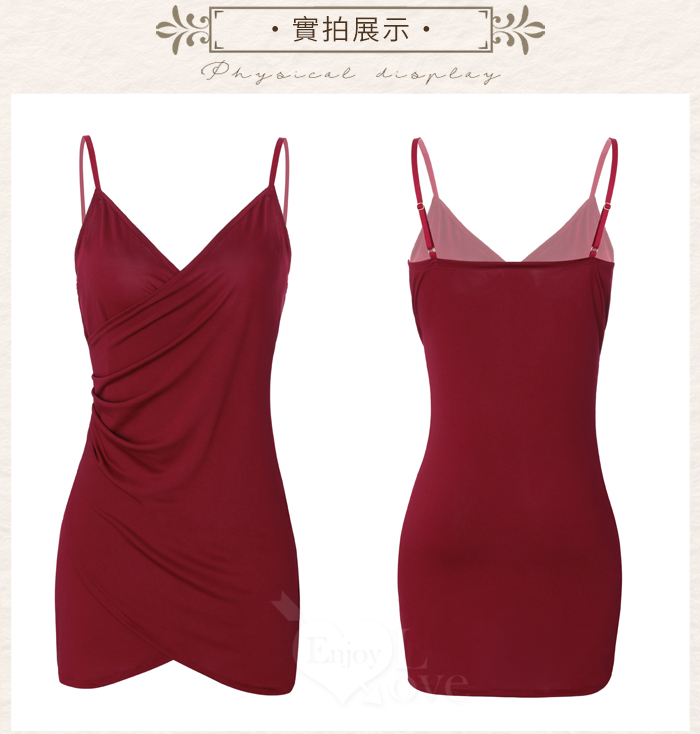 【棉花糖女孩】大尺碼情趣睡衣!吊帶V型美胸交疊雙層開衩裙兩件組﹝紅﹞
