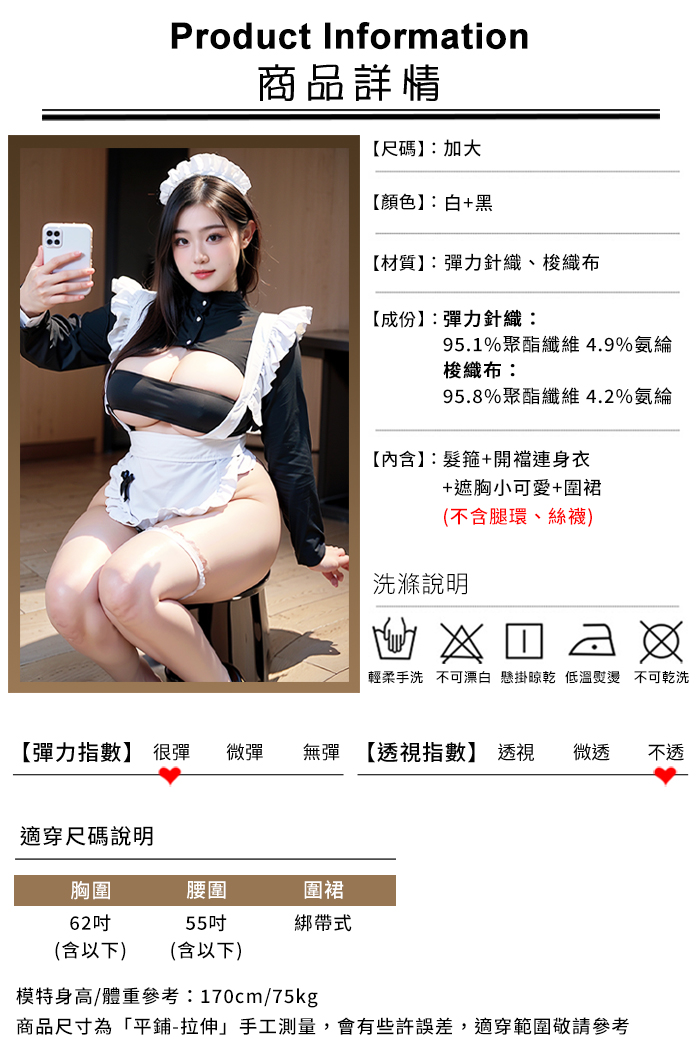 ►您現在的位置:首頁>【棉花糖女孩】大尺碼女僕角色扮演服!一字遮胸木耳花邊可開襠連身衣四件式套裝