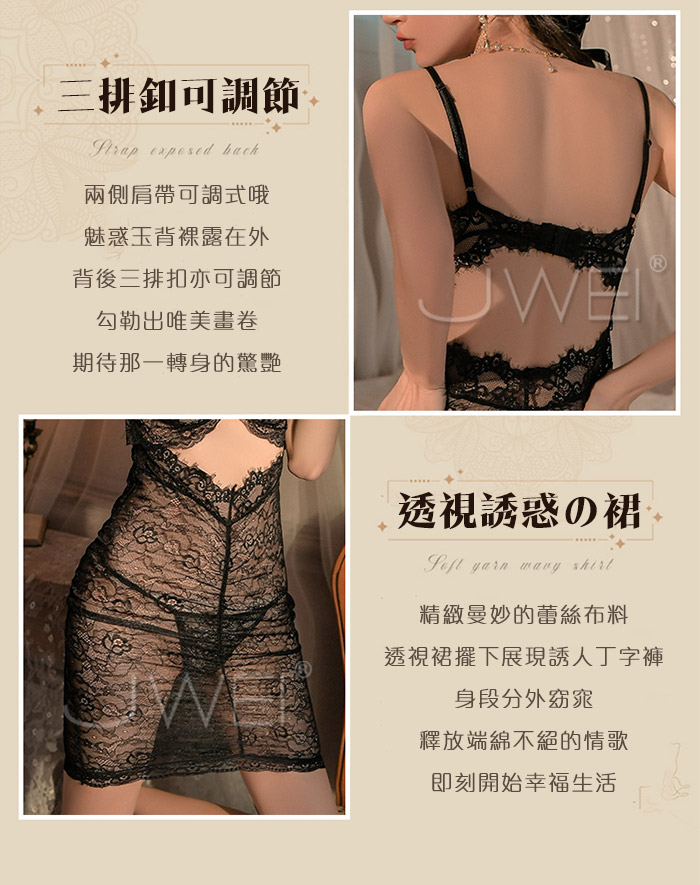 ►您現在的位置:首頁>朦朧誘惑.法式浪漫純欲透視蕾絲連身裙-白