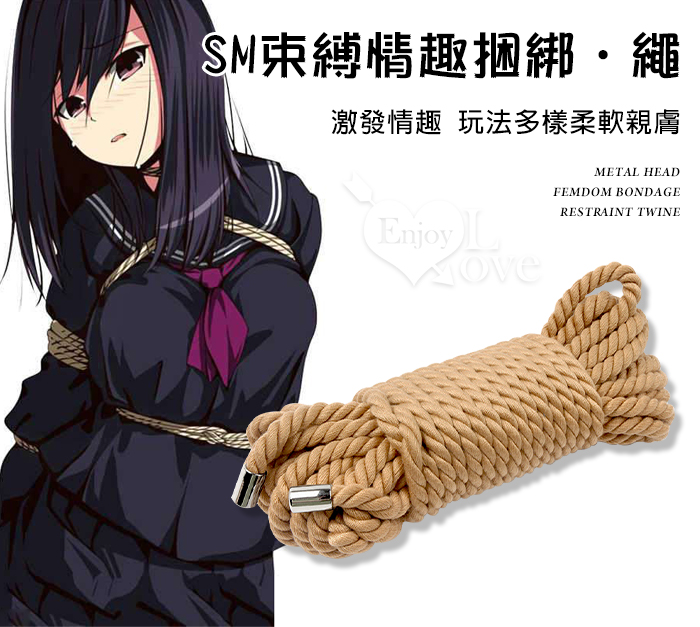 SM調教捆綁束縛繩-金屬頭-15米(棕)