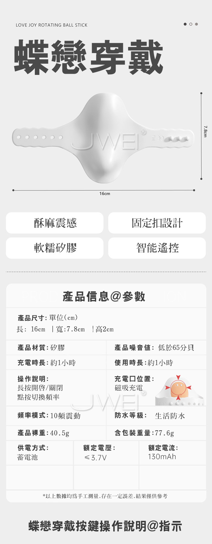 輕薄貼合 固定防脫落 花樣震顫,從溫柔挑逗到欲罷不能, 軟糯身材 絲滑矽膠 不傷私處,軟軟的才放心~~ 產品規格 ■尺寸:大小詳如圖片標示 ■材質:矽膠 ■特色:10頻震動、生活防水、低音設計 ■充電方式:磁吸式插孔﹐USB孔充電