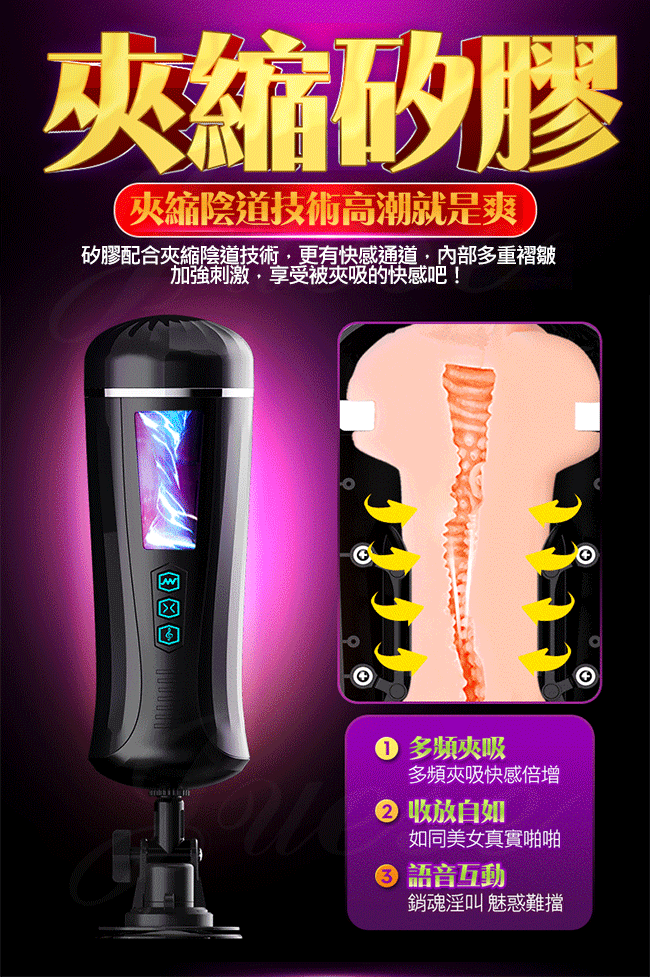 戰神 七彩燈光智能叫床夾吸震動自慰杯