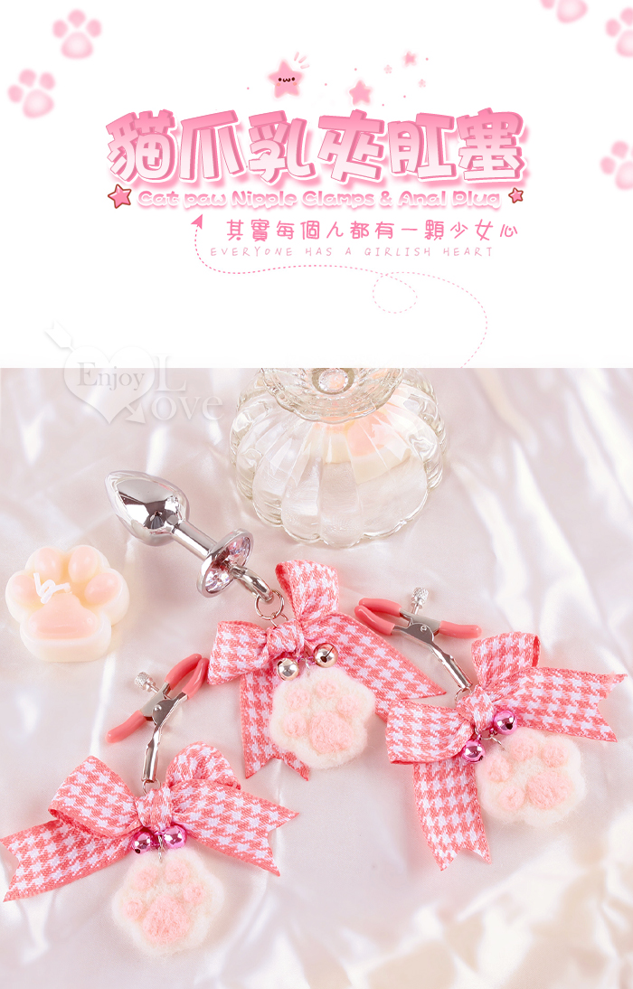 貓爪乳夾肛塞套裝 - 鈴鐺/蝴蝶結/不銹鋼/亮彩水鑽﹝另類體驗樂趣/可愛度爆表﹞
