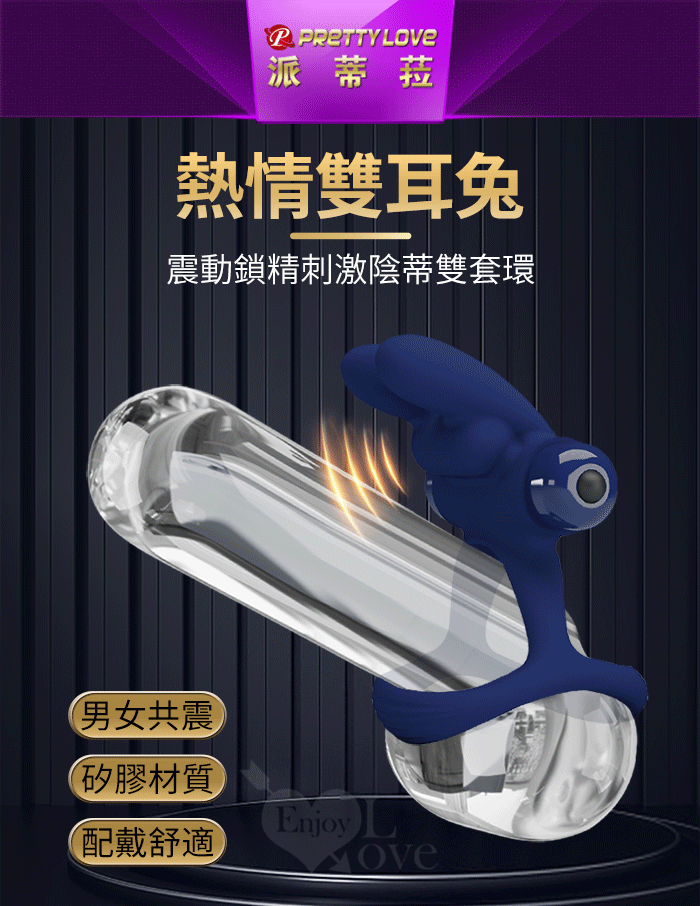 派蒂菈 ‧ 熱情雙耳兔 震動鎖精刺激陰蒂雙套環﹝10頻強震+雙環固精+激顫陰蒂+舒適硅膠﹞湛藍