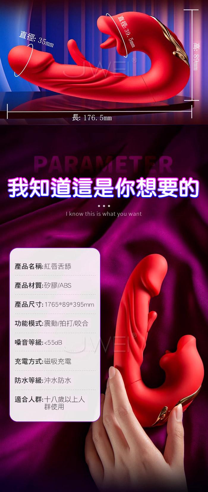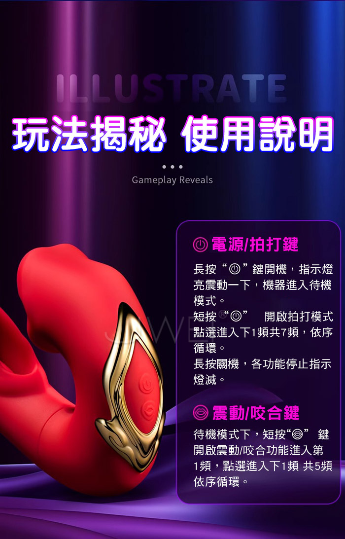 “舔秘”時光 從前戲到高潮,三路齊爽 高潮此起彼伏 內外夾擊 無限快感,咬舐舔撩 拍打摳震 龜頭強震 1+1+1>3 仿真龜頭撩震 重塑真實感受,柔軟順滑入體 情趣纏綿摳震 多種頻率,靈魂原地飛升,全芯智能馬達,釋放震顫力量 ■尺寸:大小詳如圖片標示 ■材質:矽膠+ABS ■特色:咬合舌舔、拍打摳震、龜頭強震