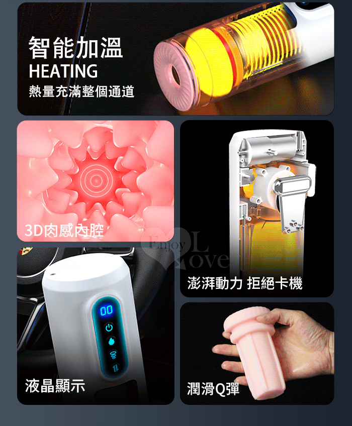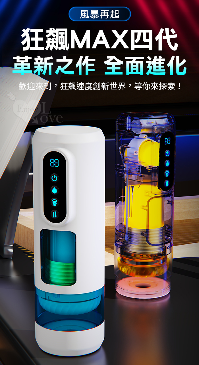 Hgod-狂飆MAX四代 ‧ 風暴再起 全自動9X強勁內伸縮+9X真空吮吸+9X震動+智能加溫 狂浪聲吟電動飛機杯﹝3D肉感內腔+液晶顯示+3國語音+耳機+可視窗口/自慰/鍛練﹞藍白