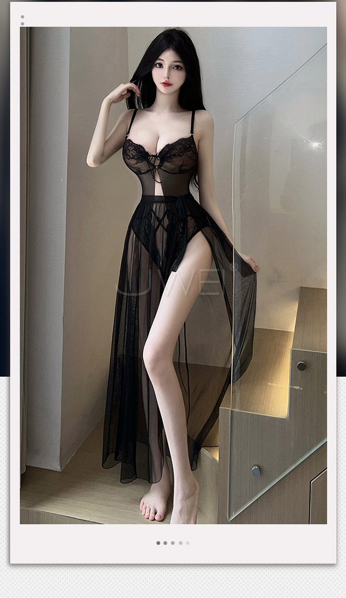 ►您現在的位置:首頁>浪漫情網.性感深V露溝開襠免脫連身衣+飄逸紗裙-黑色