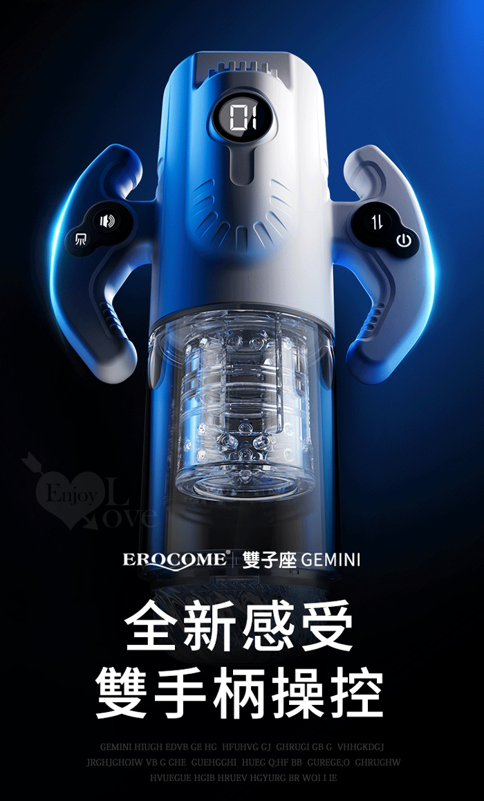 ►您現在的位置:首頁>EROCOME伊珞. GEMINI 雙子座 9X9伸縮/旋轉/吮吸 雙手柄設計叫床電動自慰杯﹝一鍵爆發+液晶顯示+軟彈肉粒蜜道+耳機+USB充電﹞