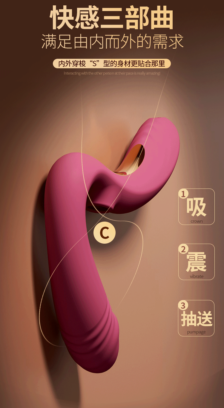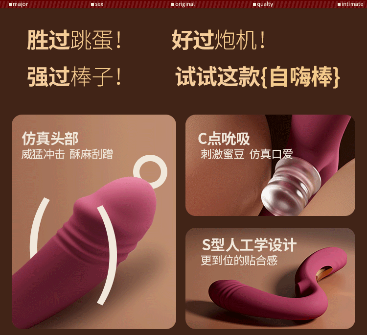 姬欲.自嗨棒 多頻強震自慰神器 內震+外吸 震動棒(伸縮APP版)紫色