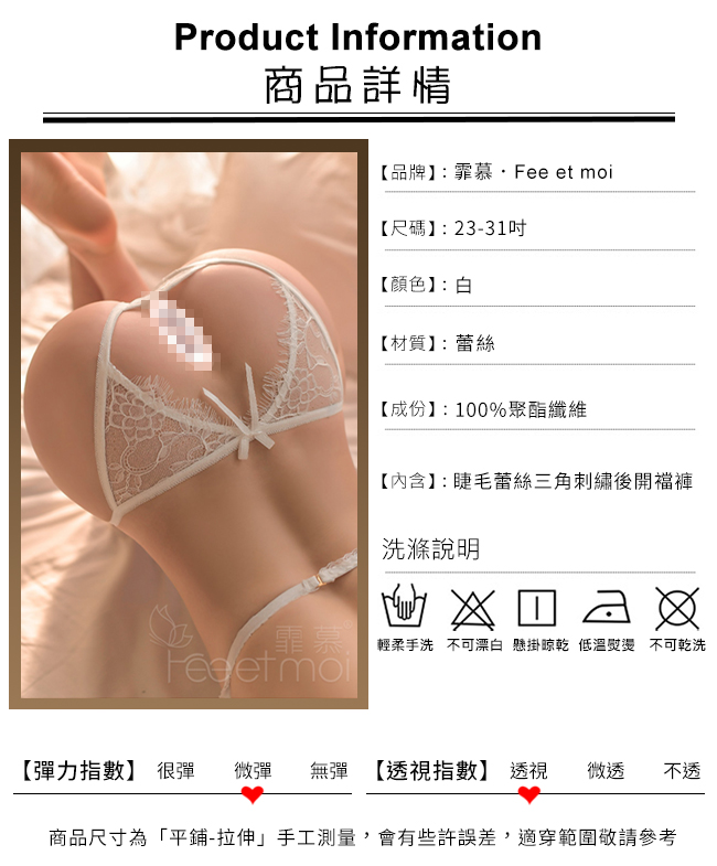 | 睫毛蕾絲三角刺繡後開襠褲﹝白﹞