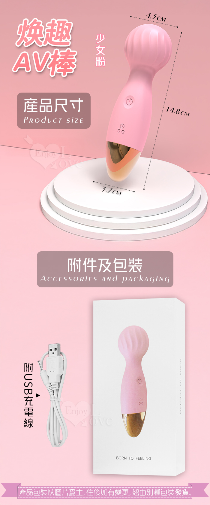 SAGAN 尚感 ‧ 煥趣 AV按摩棒 12頻強震/小巧便攜/螺紋刺激/滑順親膚﹝少女粉﹞