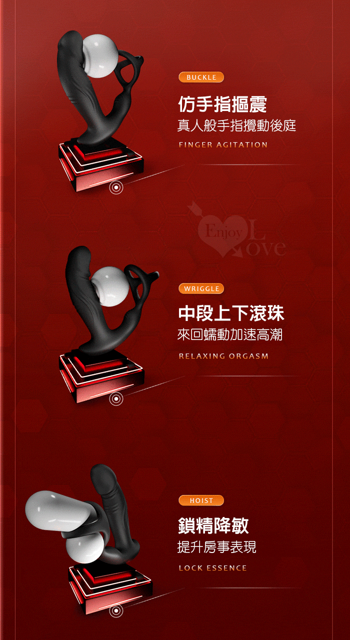 | YUNMAN 云曼 ‧ 拱地龍 無線遙控摳動+上下滾珠雙震動鎖精前列腺按摩器﹝7段調控/雙束環鎖精/後庭刺激/磁吸充電﹞