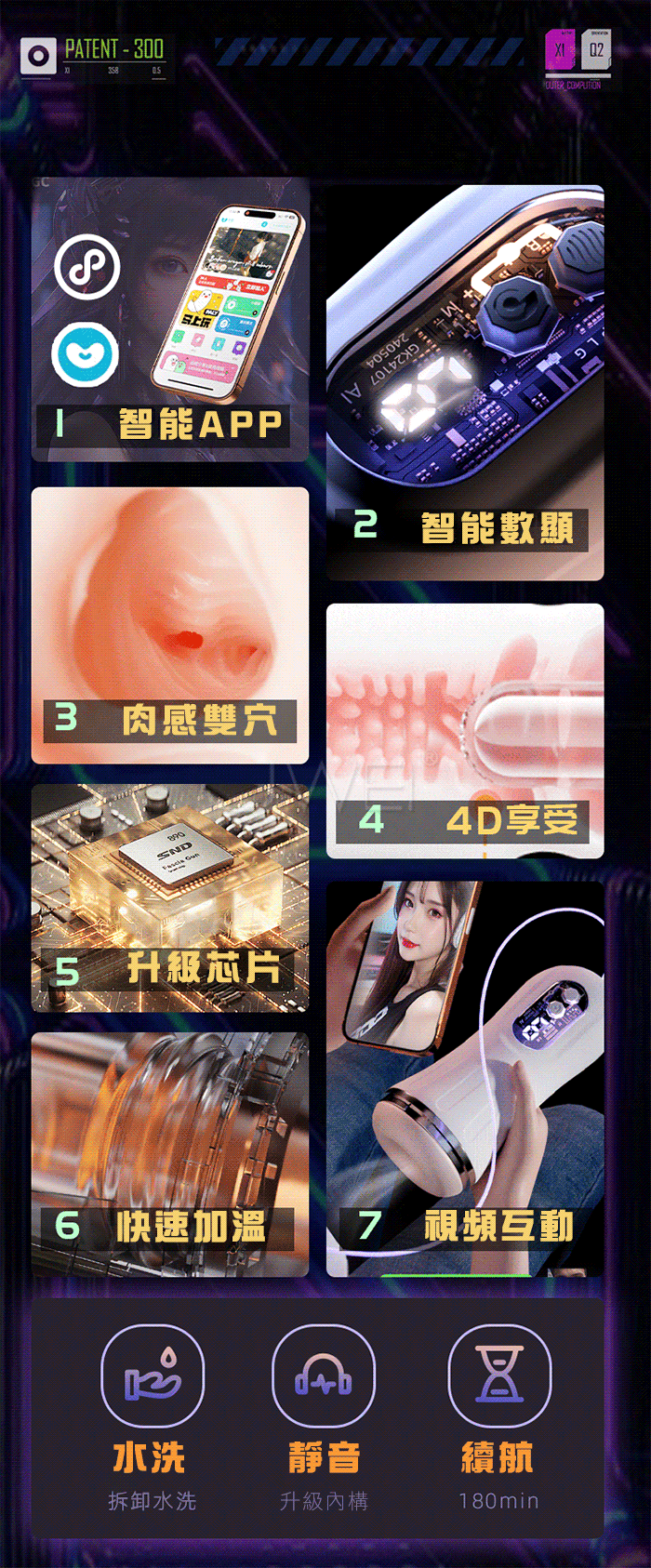 ■特點:9頻可調強震、智能加溫、APP控制、生活防水
