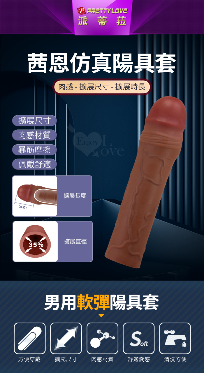 派蒂菈 ‧ CHANE 茜恩 仿真膚質陽具大龜頭加強套﹝XL-5CM擴展尺寸/爆筋摩擦/肉感材質/配戴舒適﹞