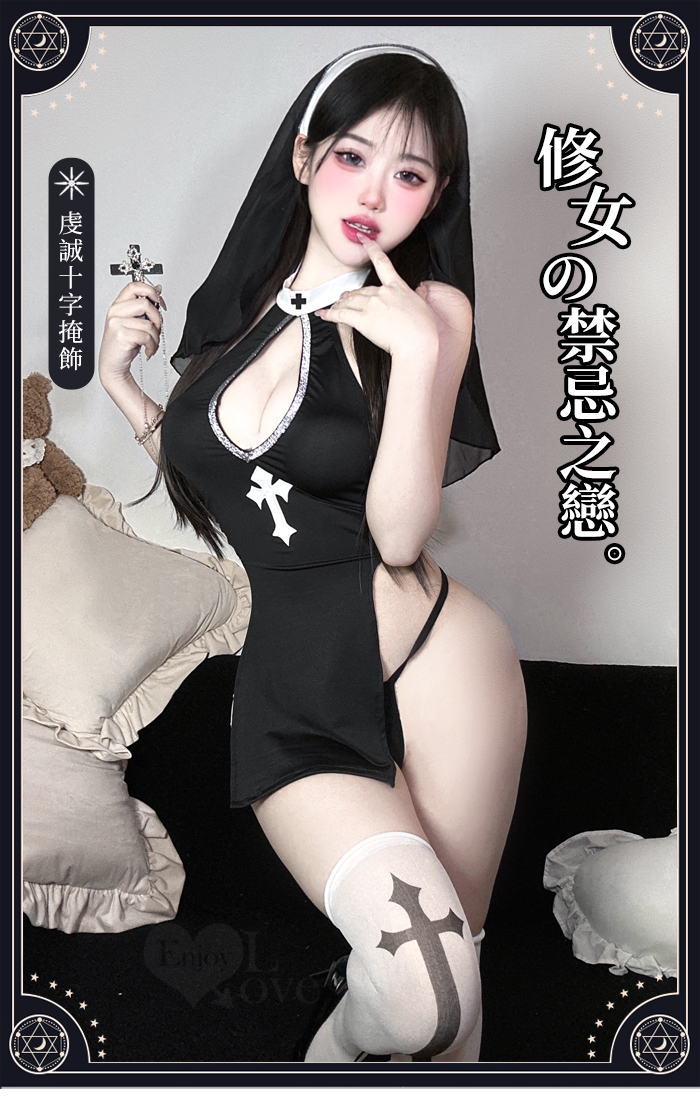 ►您現在的位置:首頁>修女角色扮演服!水滴美胸兩片式側高衩連身裙含十字絲襪四件式套裝