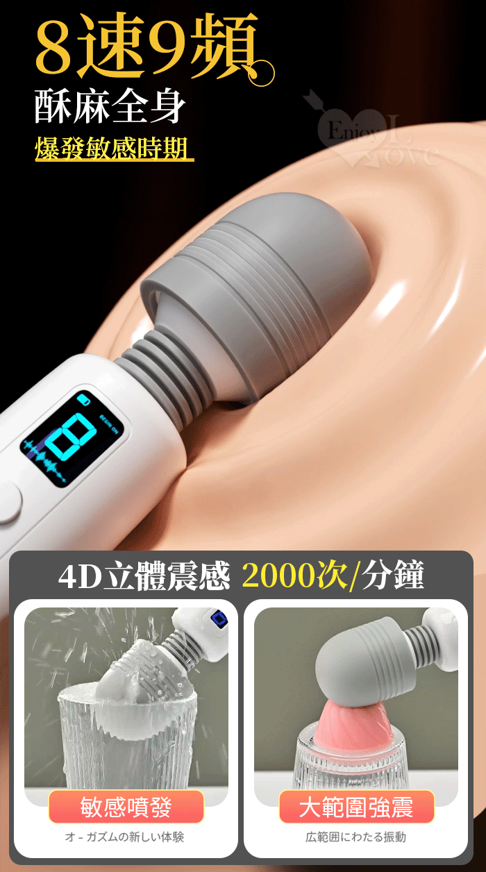 | ROSELEX 勞樂斯 ‧ 速瑪~8速9頻AV按摩棒 靈活頸部/液晶顯示/滾輪調速-日式片場同款AV棒