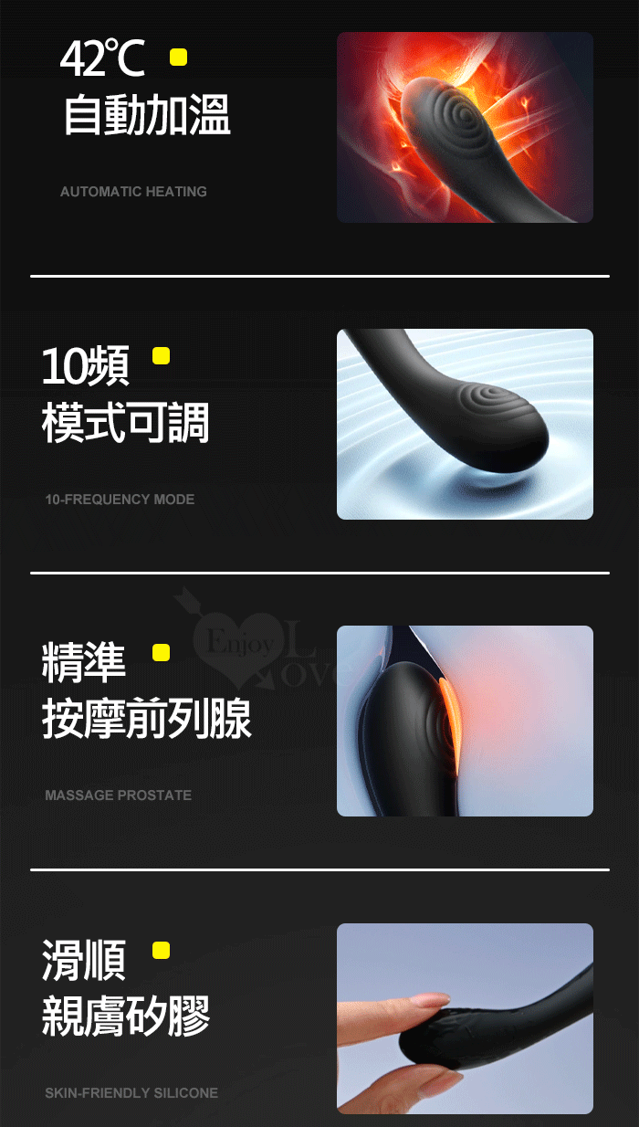 ROSELEX 勞樂斯 ‧ 黑潮 10頻震精準觸擊前列腺按摩棒﹝智能加溫/曲線收腰易入/親膚矽膠﹞
