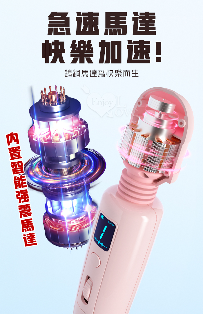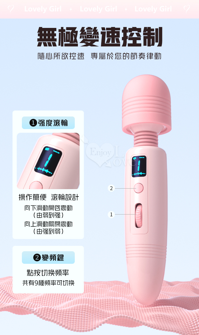 ROSELEX 勞樂斯 ‧ 速瑪~8速9頻AV按摩棒 靈活頸部/液晶顯示/滾輪調速-日式片場同款AV棒﹝粉﹞