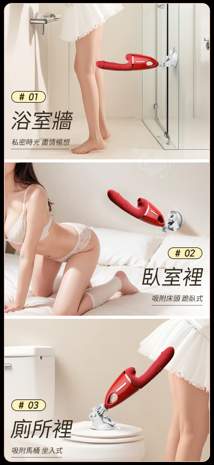 ROSELEX 勞樂斯 ‧ 安吉拉 10x10頻全自動伸縮+吸吮吸盤炮機 - 可手機APP遠程遙控﹝紅﹞