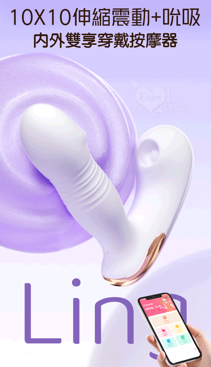 | ROSELEX 勞樂斯 ‧ 靈感 10X10伸縮震動+吮吸 內外雙享多功能按摩器 - 可手機APP遙控﹝具兩種操控模式﹞