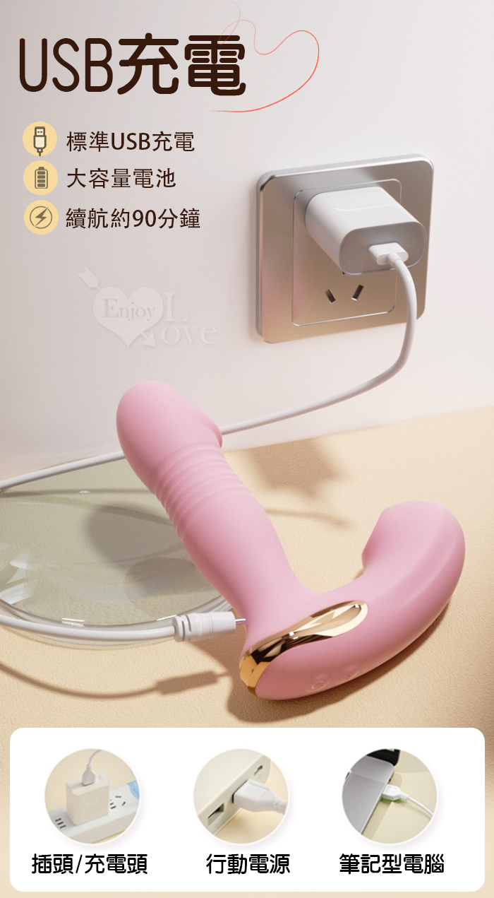| DMM-吸逗熊 5頻吸吮+10頻旋轉 愛潮節奏矽膠按摩棒-粉