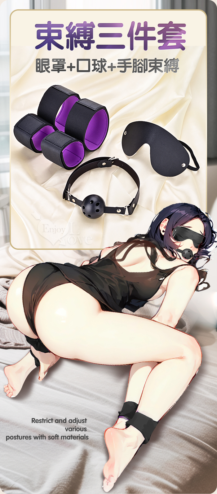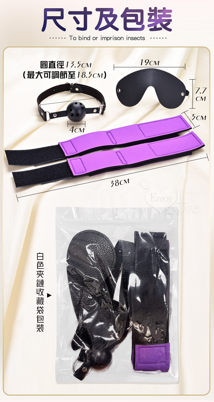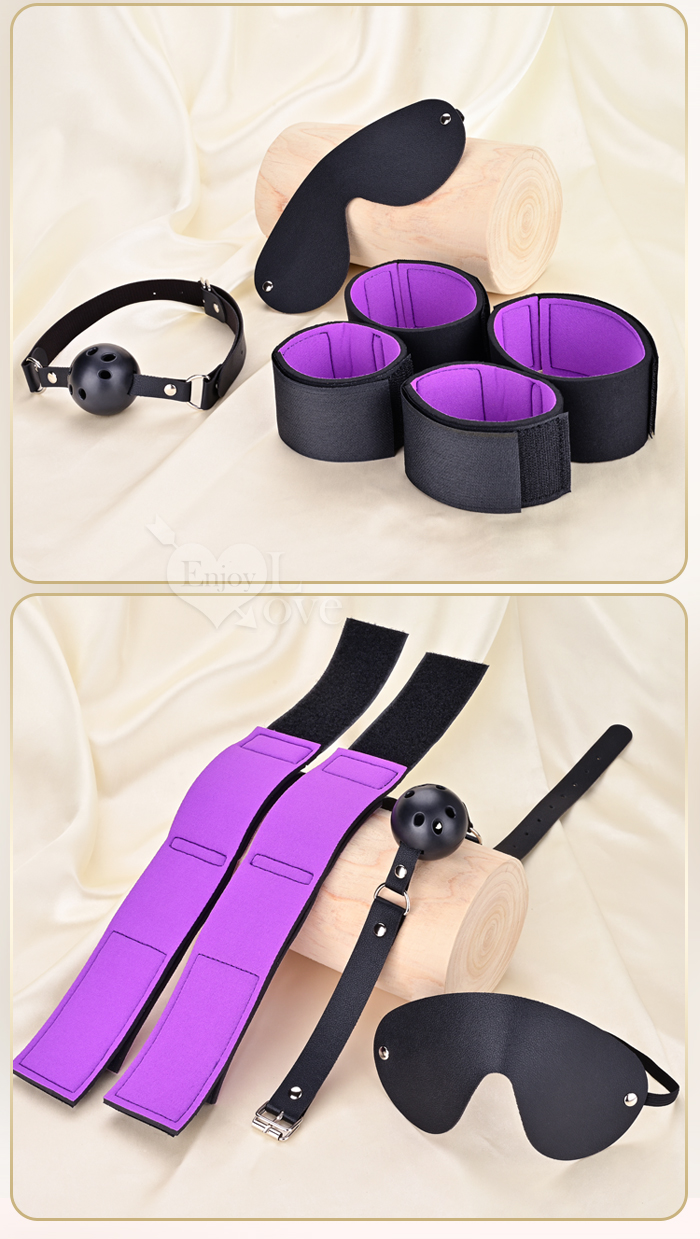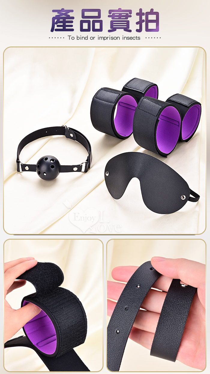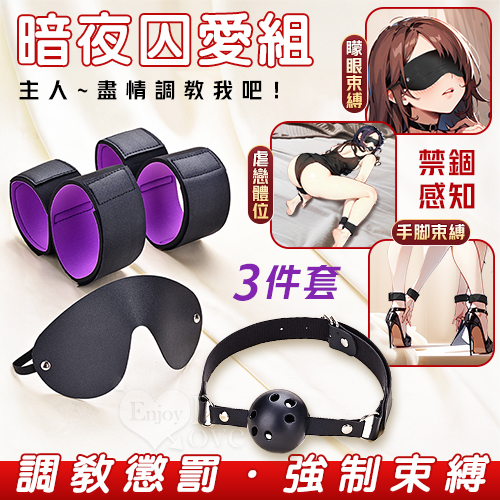 暗夜囚愛組 ‧ 皮革眼罩+失語口塞+手腳束缚銬 禁錮感知三件套 SM