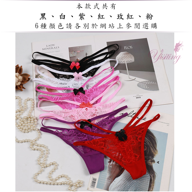 | 寵愛今夜!雙細帶蕾絲花朵性感美臀T字褲﹝玫紅﹞