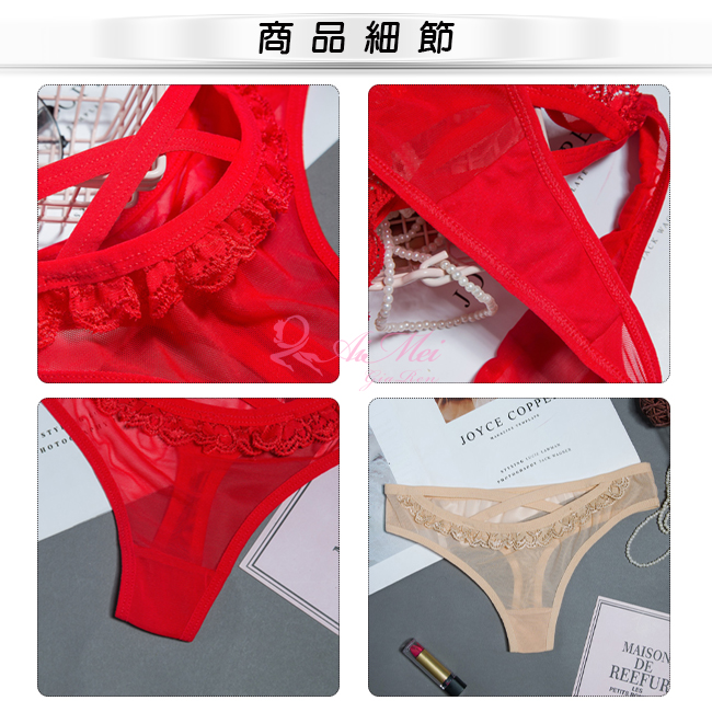 ►您現在的位置:首頁>溫柔暗號!前交叉細帶滾邊蕾絲網紗中腰T字褲﹝膚﹞