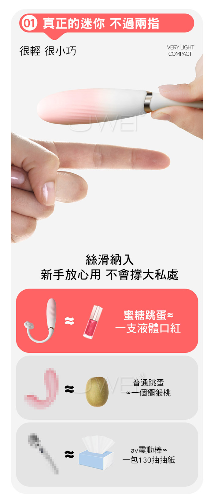 真正的迷你,不過兩指寬很輕很小巧,絲滑進入不撐大