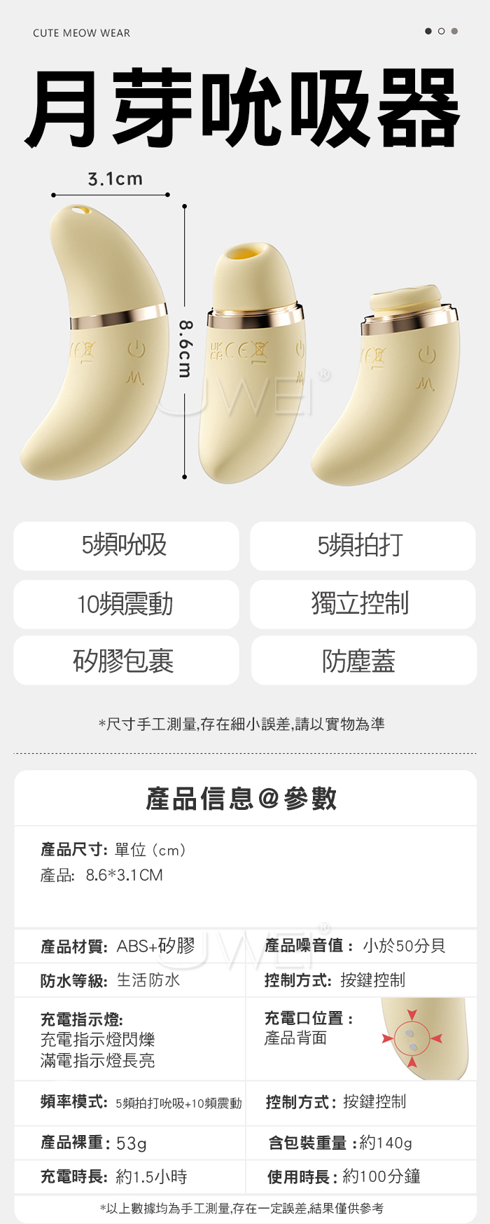 ■功能:5頻吮吸、5頻拍打、10頻震動