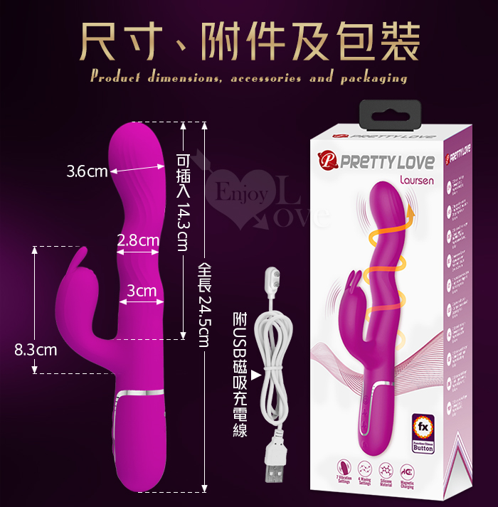 派蒂菈 ‧ Loursen 勞爾森 4蠕動+7震動 瘋狂蠕動震感內外夾擊入體按摩棒-洋紅