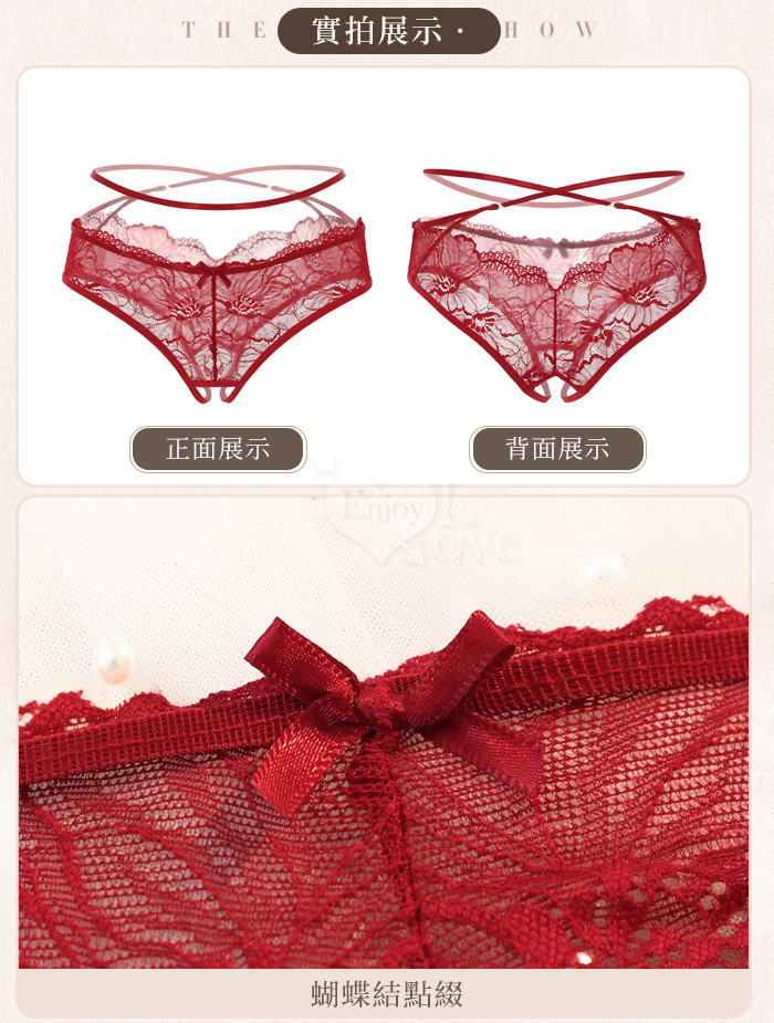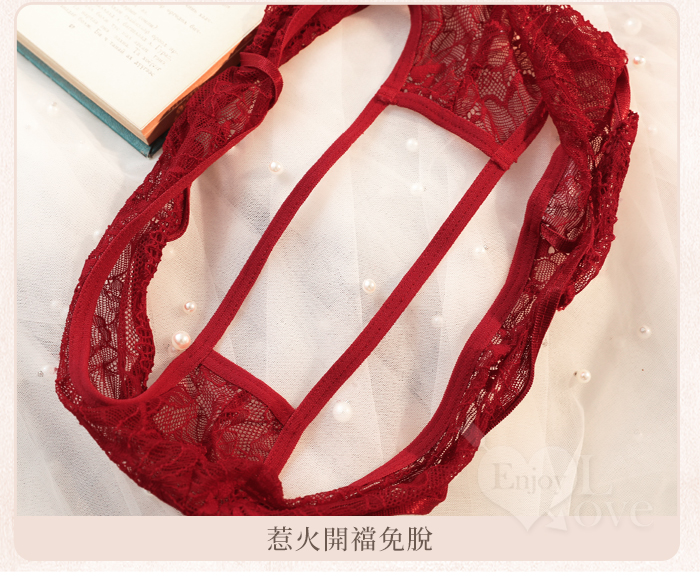 | 空氣感花蔓透紗·纏腰細帶|開襠免脫情趣內褲﹝紅﹞