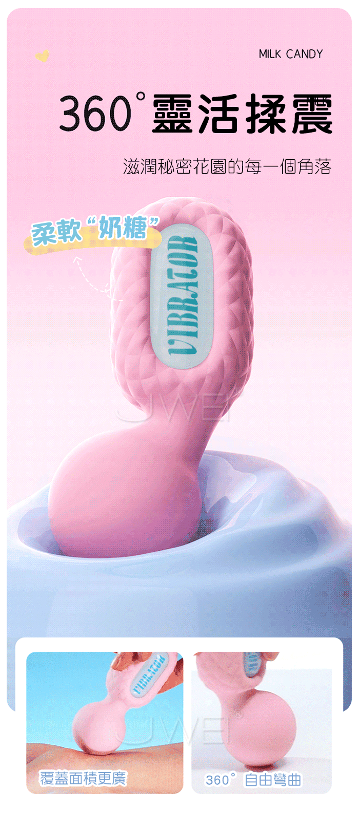 360度靈活揉震,滋潤秘密花園的每一個角落 覆蓋面積更滿