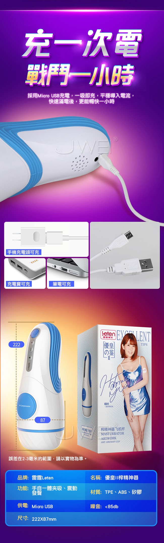 ■尺寸:詳如下圖所示 ■材質:TPE、ABS、矽膠 ■供電:USB充電 ■3檔恆震 ■7段變頻震動 ■語音叫床 ■智能互動