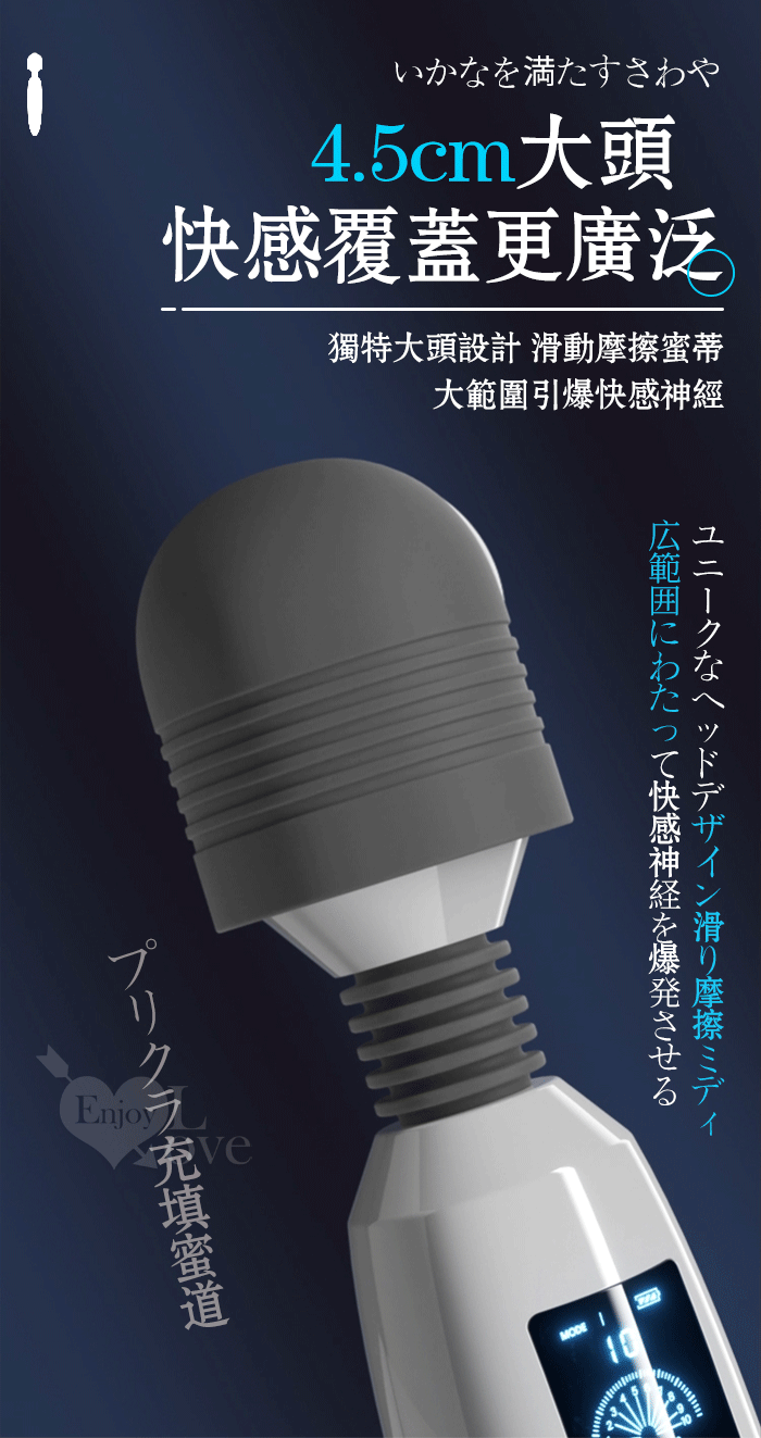 ROSELEX 潮吹王AV棒 ‧ 女優を絕叫 液晶螢幕顯示9頻X8級速大頭強震按摩棒-灰白﹝智能加溫款﹞