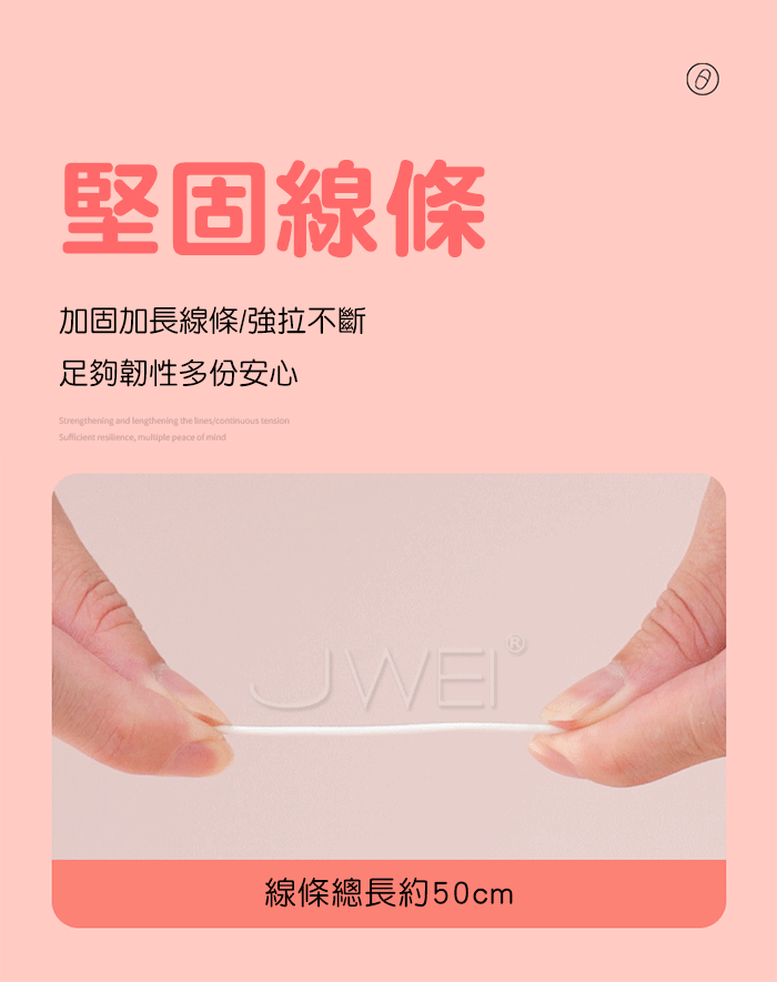 多頻強震,酥麻全身,多種頻率,不同玩法簡易一鍵操控 堅固線條,加固加長線條/強拉不斷,足夠韌性多份安心 人性化設計,約可承受7KG拉力測,線條總長約50cm 產品規格 ■尺寸:大小詳如圖片標示 ■材質:ABS ■功能:7頻震動 ■供電:4號電池*2