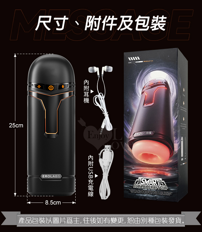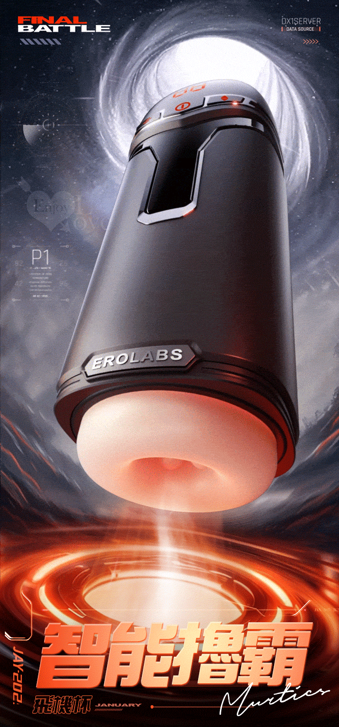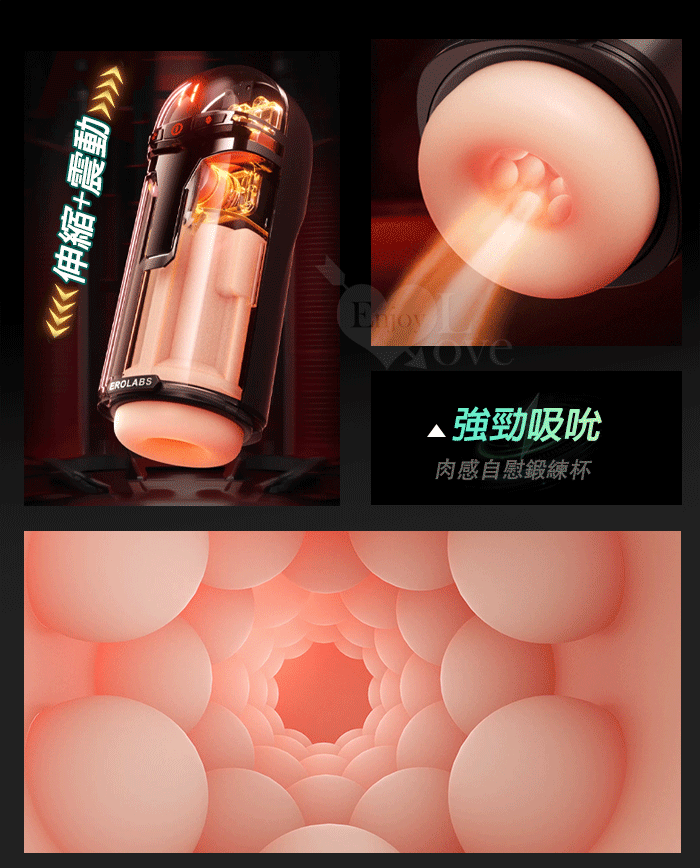 EROLABS 擼霸全配版 ‧ 智能伸縮/吸吮/震動/語音 緊實肉感自慰鍛練杯﹝液晶數碼9頻伸縮X9頻吸吮X9強震+4國淫聲+耳機﹞黑色