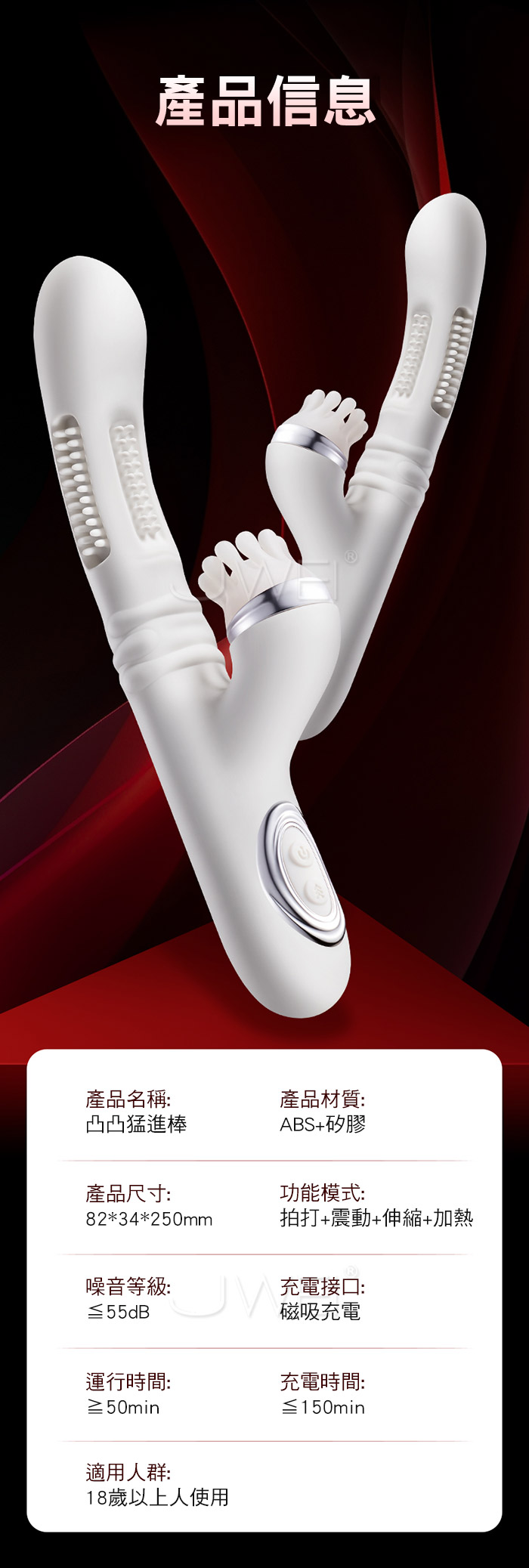 凸凸猛進.8x8x8頻伸縮拍打撩震+88根軟刺毛刷 G點爽潮加溫按摩棒